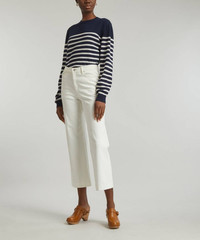 Editor's Notes This classic Breton striped sailor jumper is by Parisian basics brand, A.P.C.. Knitted from a super-soft cashmere and cotton-blend for a relaxed, slightly slouchy silhouette, this navy and cream crew-neck pullover is elevated by its striped pattern. Features Sailor striped jumper Cashmere and cotton-blend Relaxed fit Crew neckline Dropped shoulders Ribbed collar, cuffs and hem A.P.C. embroidered hem detail SIZE & FIT Model is 180cm/5ft 11"; Chest: 79cm; Waist: 62cm; Hip: 89cm and wears a size S Composition & Care 50% Cashmere; 50% Cotton Hand wash About A.P.C. A.P.C. (Atelier de Production et de Création) was launched in Paris in 1987 by designer Jean Touitou as a one-stop shop for unfussy, all-day French style. After 30 years at the top of its game, A.P.C. is the true master of understated ready-to-wear. With bags and jeans the brand's bestsellers, the simple lines and clean design of A.P.C. clothing are the secret to its success; attention-to-detail and unwavering quality the key to its longevity.