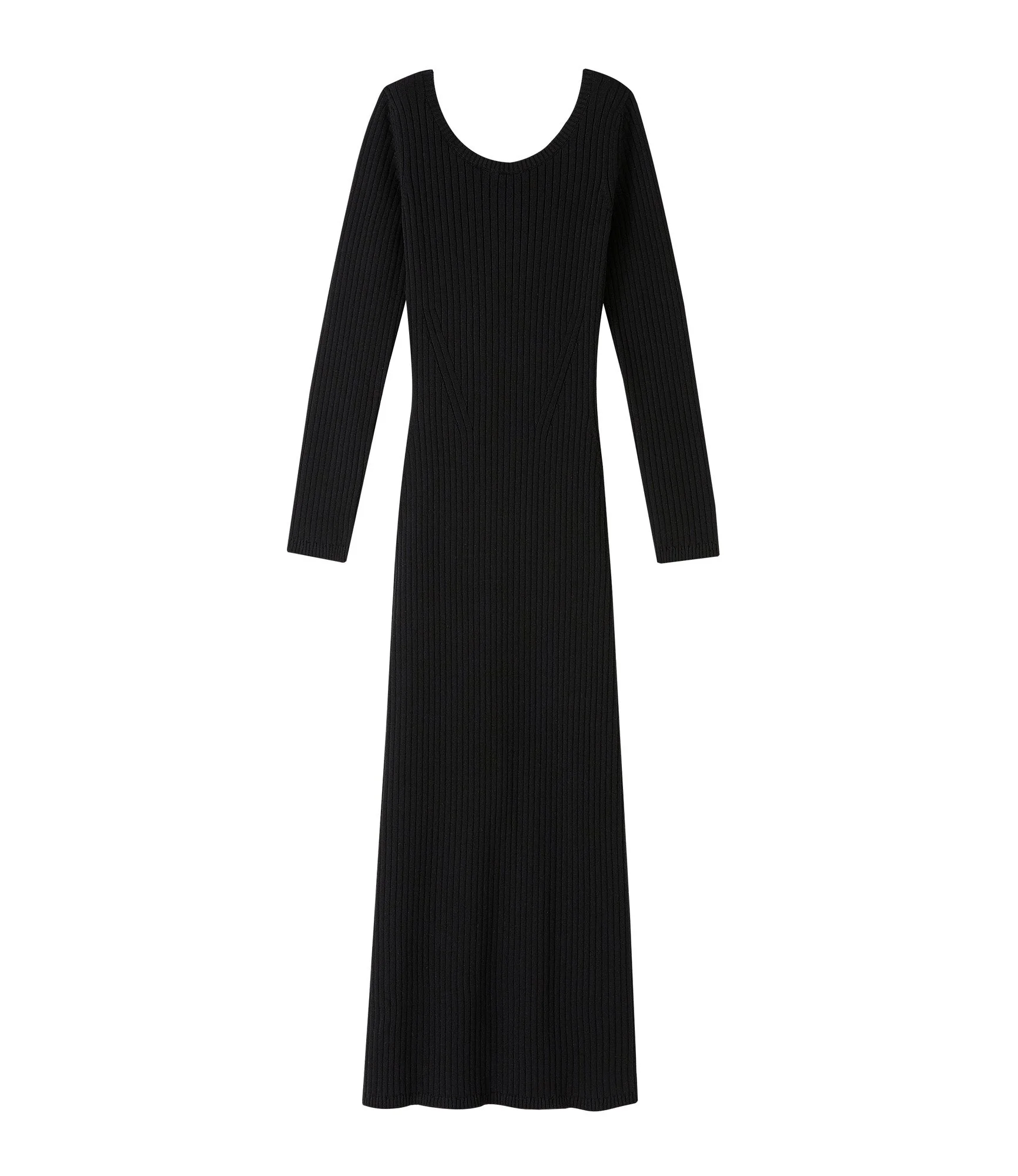 A.P.C. Women's dress. - Fitted cut. - Ankle length. - Neckline is wide at front and low at back. - Slit at right. - Openwork details on sides. - Composed of 80% organic cotton and 20% GOTS-certified Merino wool. Global Organic Textile Standard is the international standard for organic fibers with independent certification of the entire textile supply chain. Size Advice - Lorena is 5'11 tall and is wearing size S. - This model fits true to size; choose your usual size. Composition & Material 80% Cotton. 20% Wool. - Italian material. - Made in Romania. - Machine wash delicate cycle or by hand. Our commitments Through its RESPECT program A.P.C reduces (by implementing many practical measures to improve its environmental footprint) regulates (by respecting and enforcing its ethical responsibility on the part of its employees as well as its suppliers) and reuses (through its recycling vintage or quilts and butler programs for example).