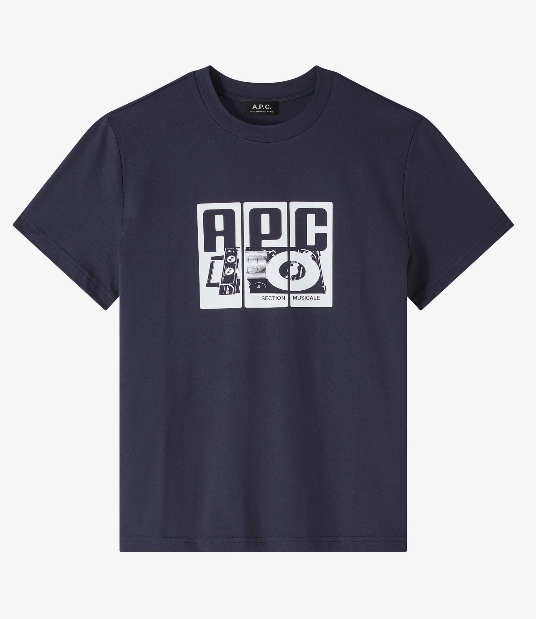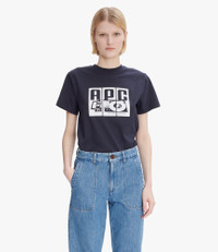 - Unisex piece. We recommend that you order one size smaller than usual. - Smooth and heavyweight material (180 g). - Straight cut. - Crew neck. - White turntable and A.P.C. logo printed in front. - 100% organic cotton. Size Advice - Ireen is 5'10 tall and is wearing size S. - We recommend that you order one size smaller than usual. Composition & Material - 100% cotton. - Made in Turkiye. - Machine wash cold (86°F) inside-out.
