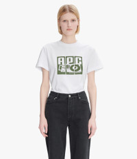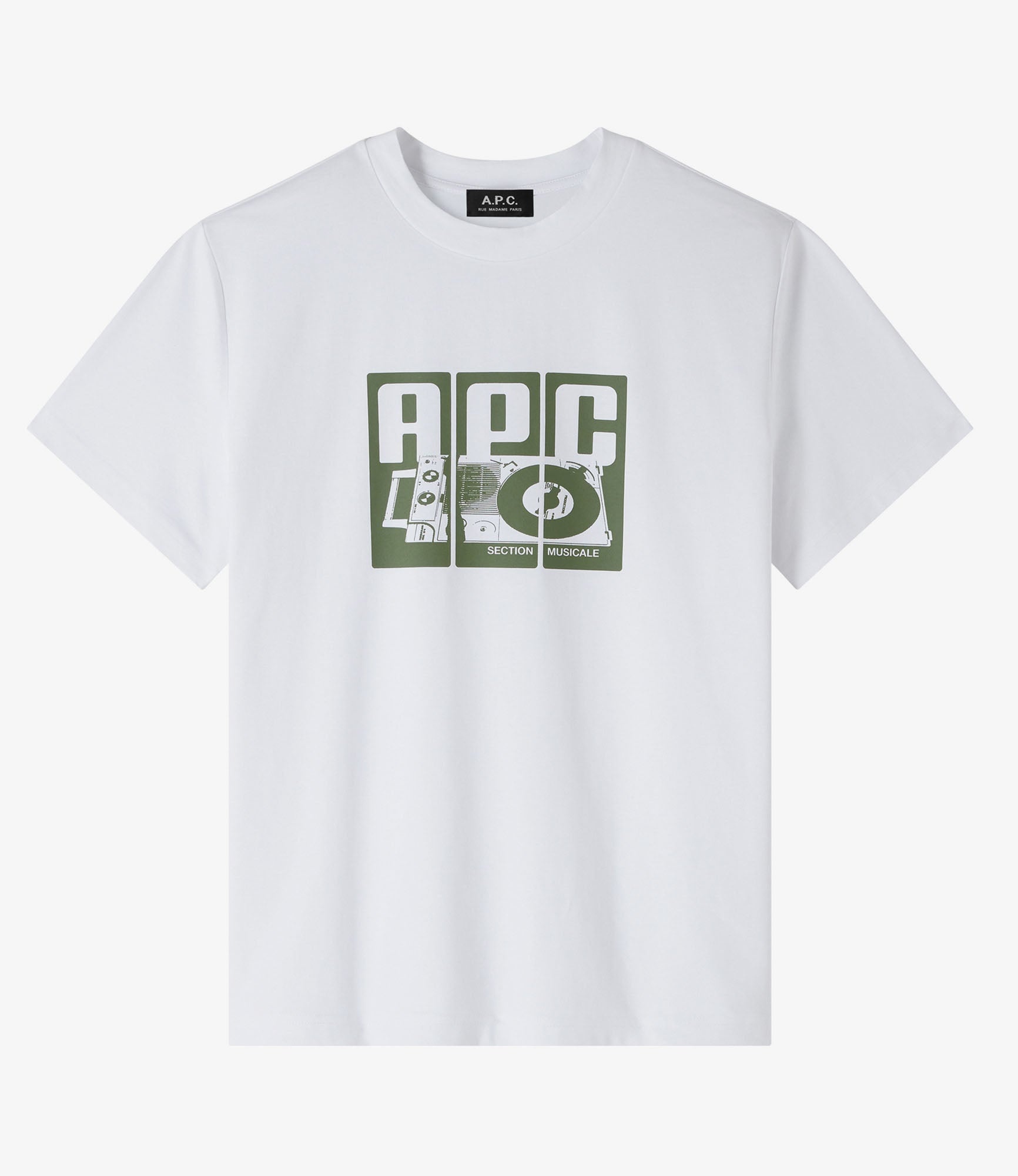 - Unisex piece. Please size down 1 size for regular fit. - Smooth and heavyweight material (180 g). - Straight cut. - Crew neck. - Khaki turntable and A.P.C. logo printed in front. - 100% organic cotton. Size Advice - Ireen is 5'10 tall and is wearing size S. - We recommend that you order one size smaller than usual. Composition & Material - 100% cotton. - Made in Turkiye. - Machine wash cold (86°F) inside-out.