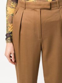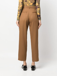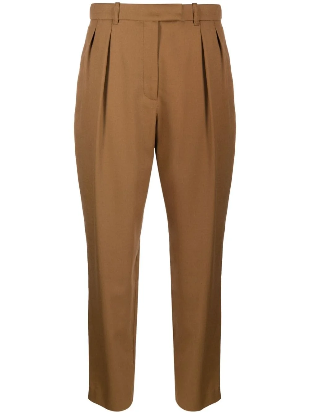 pleated cropped trousers A.P.C stands for Atelier de Production et de Creation, a brand known for creating casual and timeless styles. These pleated cropped trousers feature a wool construction with a relaxed cut. Highlights - Camel brown - Wool - Pleat detailing - High-waisted - Concealed front fastening - Two side inset pockets - Two rear welt pockets - Cropped leg Imported Composition Wool 100% SIZE & FIT Model measurements Height 5 ft 10 in(1.78 m) Bust/Chest 31.49 in(80 cm) Hips 36.22 in(92 cm) Waist 25.59 in(65 cm) FittingInformation Designed for a tapered fit, these trousers allow for a close fit at the waist and a loose unrestricted fit over the leg with a closer fit towards the ankle Made from a midweight non-stretch fabric This piece fits true to size – take your usual size Washing instructions Dry Clean Only