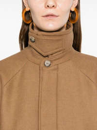 Pocket wool coat Highlights - Camel - Wool - Front pockets - Long sleeves - Concealed closure - Classic collar Imported Composition Wool 75%, Polyamide 25% SIZE & FIT Model measurements Height 5 ft 10 in(1.79 m) Bust/Chest 33.46 in(85 cm) Hips 34.64 in(88 cm) Waist 23.62 in(60 cm) Washing instructions Dry Clean Only