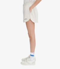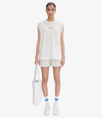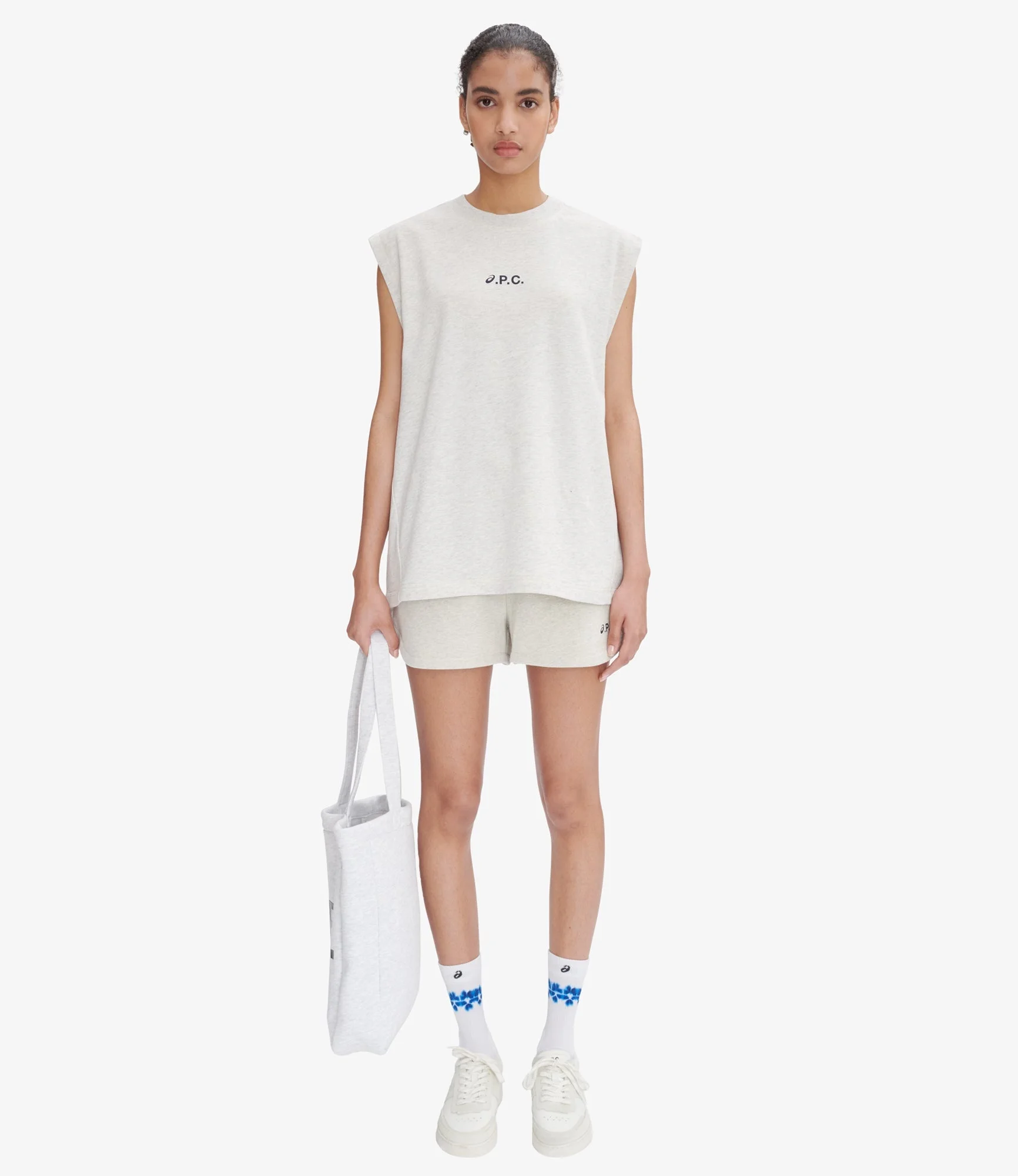 A.P.C. x Asics shorts. - Straight cut. - Mid-rise. - Mid-thigh length. - Elasticated waistband. - Two side pockets. - Black A.P.C. and Asics logo on the left. - Rounded side slits. - 100% organic cotton. Size Advice - Julie is 5'9 tall and is wearing size S. Composition & Material - 100% cotton. - Portuguese material. - Made in Portugal. - Machine wash cold (86°F) inside-out.