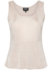 ribbed-knit top A.P.C proves its penchant for minimalist design with this tank top; it’s ribbed-knit from beige threads with a subtle lustrous shimmer. Highlights - Sand beige - Fine ribbed - Scoop neck - Sleeveless - Straight hem Imported Composition Viscose 100% SIZE & FIT Model measurements Height 5 ft 11 in(1.8 m) Bust/Chest 34.25 in(87 cm) Hips 35.82 in(91 cm) Waist 24.8 in(63 cm) FittingInformation Designed for a relaxed fit, this piece allows for comfort and movement when worn Made with a midweight knit, this piece offers some stretch This piece fits true to size – take your usual size Washing instructions Hand Wash