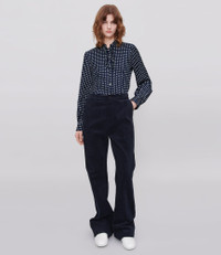 - Flare cut. - Long leg flared at the bottom. - Mid-rise. - Two side pockets and two back pockets. - Tone-on-tone faux horn button. - Zip fly. Size Advice - Matilda is 5'9 tall and is wearing size 36. - This item sizes normally. We recommend that you select your usual size. Composition & Material - 100% cotton. - Spanish material. - Made in Bulgaria. - Machine wash cold (86°F) inside-out.