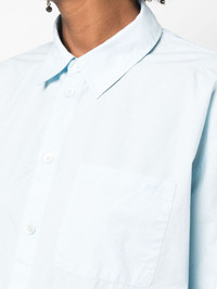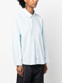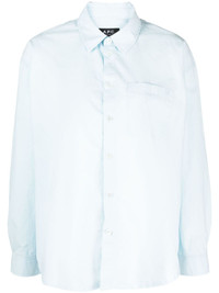 long-sleeve button-fastening shirt The minimalist design style of A.P.C reflects the Parisian roots of the brand. Reflected on this long-sleeve shirt from the SS23 collection, the garment features a monochromatic colourway and silhouette made up of clean lines, creating a timeless design. Highlights - Blue - Cotton - Classic collar - Front button fastening - Long sleeves Imported Composition Cotton 100% SIZE & FIT Model measurements Height 5 ft 11 in(1.8 m) Bust/Chest 31.49 in(80 cm) Hips 35.82 in(91 cm) Waist 24.8 in(63 cm) Measurement SLEEVE LENGTH 21.25 in(54 cm) LENGTH 26.37 in(67 cm) BUST 46.45 in(118 cm) Shoulder Width 20.47 in(52 cm) FittingInformation Designed to be unstructured, offering a loose fit throughout Made from a midweight non-stretch fabric This piece fits true to size – take your usual size Washing instructions Machine Wash