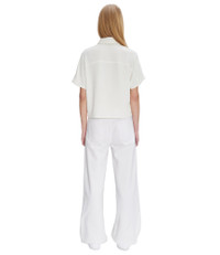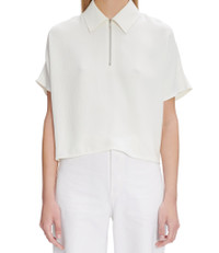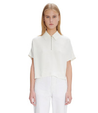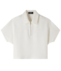 A.P.C. Women's blouse. - Straight short cut. - Shirt-style collar with zip closure. - Small batwing sleeves. - Composed of 85% EcoVero viscose: sturdy breathable viscose from forests certified durable. Size Advice - Britt is 5'10 tall and is wearing size 36. - This model fits true to size; choose your usual size. Composition & Material - 85% Viscose. 15% Polyamide. - Made in Tunisia. - Dry clean.