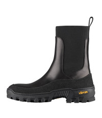 PRODUCT DETAILS Smooth calfskin leather. Rounded toe. Pull tab on back with A.P.C. logo. Large elasticated side gore on both sides. 1.9 in Vibram rubber outsole. Made in Portugal.