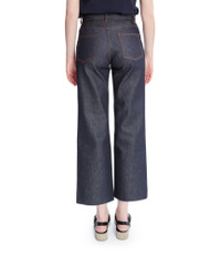 A.P.C. Women's jeans. - High waist jeans. - Fitted at the hips. - Straight legs. - 7/8 length. - Zip fly. - Caramel stitching. Size Advice - Caroline is 5'9 tall and is wearing size 26. Composition & Material - 98% cotton. 2% polyurethane. - Made in Vietnam. - Machine wash cold (86°F) inside-out. - Gentle cycle. - Do not tumble dry. - These jeans may seem shrunken after washing but they return to their original shape when worn. Our commitments Through its RESPECT program A.P.C reduces (by implementing many practical measures to improve its environmental footprint) regulates (by respecting and enforcing its ethical responsibility on the part of its employees as well as its suppliers) and reuses (through its recycling vintage or quilts and butler programs for example).