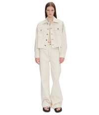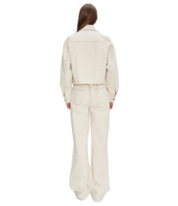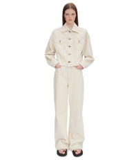 - Short wide cut. - Sloping shoulders. - Classic collar. - Cut frayed hem. - Two buttoned pockets with topstitched faux flaps. - Buttoned cuffs. - Silvertone metal buttons. - Caramel topstitching. - 100% cotton derived from organic farming. Size Advice - Grace is 5'10 tall and is wearing size 36. - This item sizes normally. We recommend that you select your usual size. Composition & Material - 100% cotton. - Italian material. - Made in Portugal. - Dry clean only. Our commitments Through its RESPECT program A.P.C reduces (by implementing many practical measures to improve its environmental footprint) regulates (by respecting and enforcing its ethical responsibility on the part of its employees as well as its suppliers) and reuses (through its recycling vintage or quilts and butler programs for example).