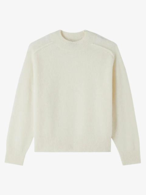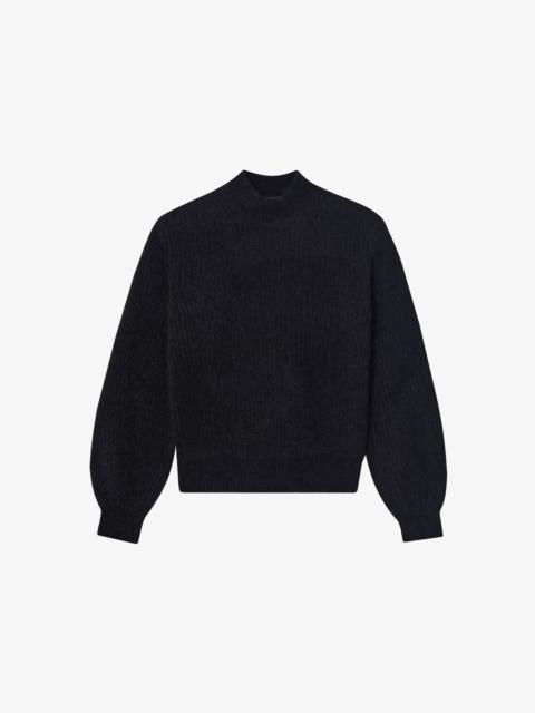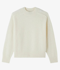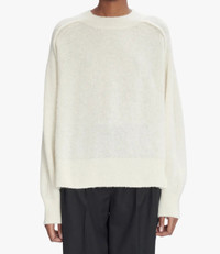 - Soft downy material. - Straight loose cut. - Crew neck. - Oversized raglan sleeves. - Textured details on the shoulders. - 25% recycled polyamide. Size Advice - Grace is 5'10 tall and is wearing size S. Composition & Material - 65% alpaca. 25% polyamide. 10% wool. - Italian material. - Made in Romania. - Hand wash or delicate cycle.