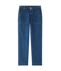 A.P.C. Women's jeans. - Straight cut envelops the hips. - Rather high waist. - Wide long leg. - Zip fly. - Topstitched pocket outlines. - Large topstitched hem. - Tone-on-tone topstitching. - Caramel topstitching. - 100% organic cotton. Size Advice - Licett is 5'9 tall and is wearing size 26. Composition & Material - 100% cotton. - Japanese material. - Made in Vietnam. - Machine wash cold (86°F) inside-out. - Gentle spin cycle. - Do not tumble dry. - The jeans may appear shrunken after washing but they return to their original shape when worn.