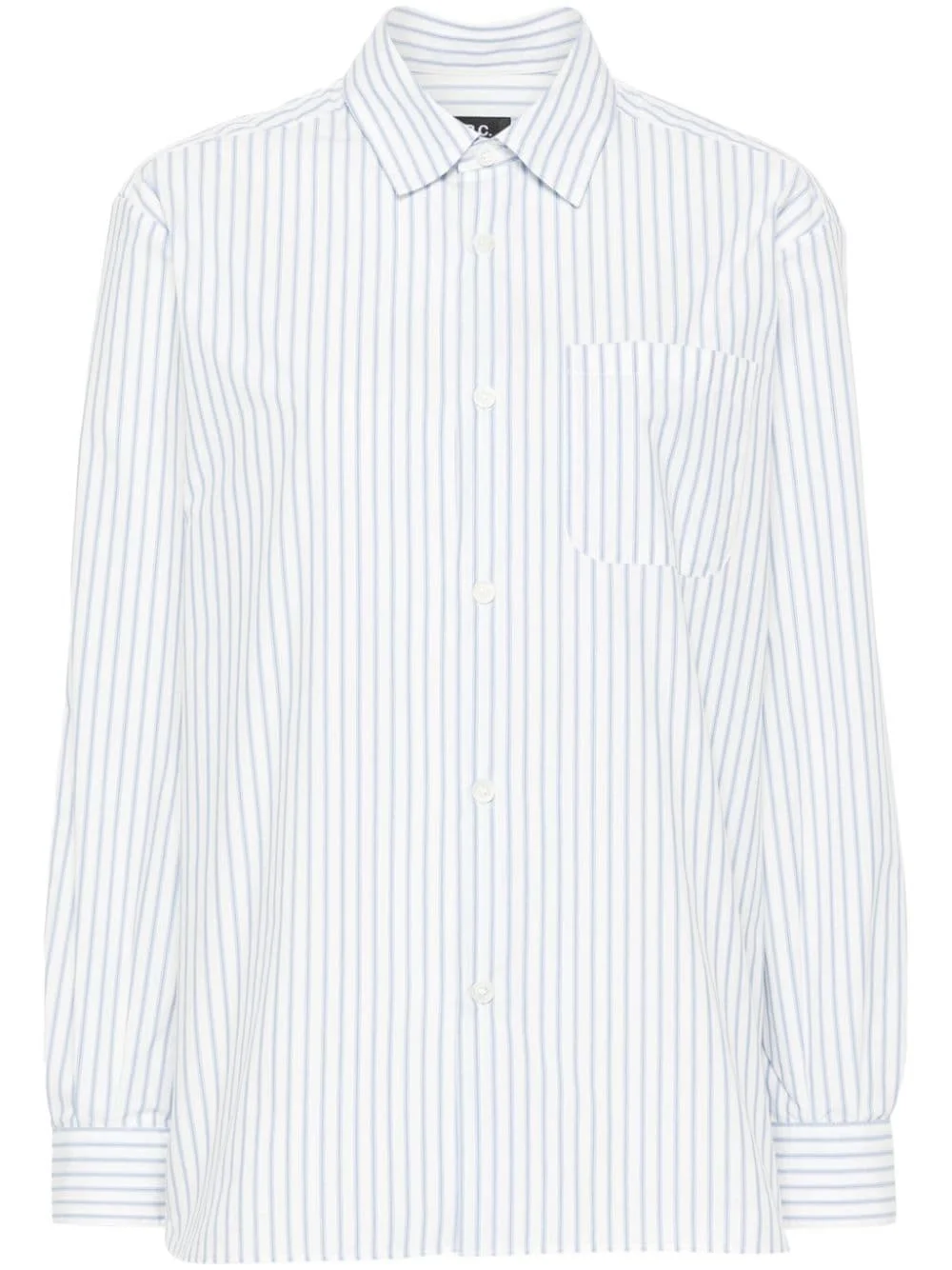 Sela striped shirt Highlights - White, blue - Pinstripe pattern - Classic collar - Long sleeves - Buttoned-cuff sleeves - Chest patch pocket - Asymmetric curved hem - Front button fastening Made in Italy Composition Cotton 100% SIZE & FIT Model measurements Height 5 ft 10 in(1.78 m) Bust/Chest 33.07 in(84 cm) Hips 36.61 in(93 cm) Waist 24.8 in(63 cm) FittingInformation Designed to be unstructured, offering a loose fit throughout Made from a midweight non-stretch fabric This piece fits true to size – take your usual size Washing instructions Machine Wash