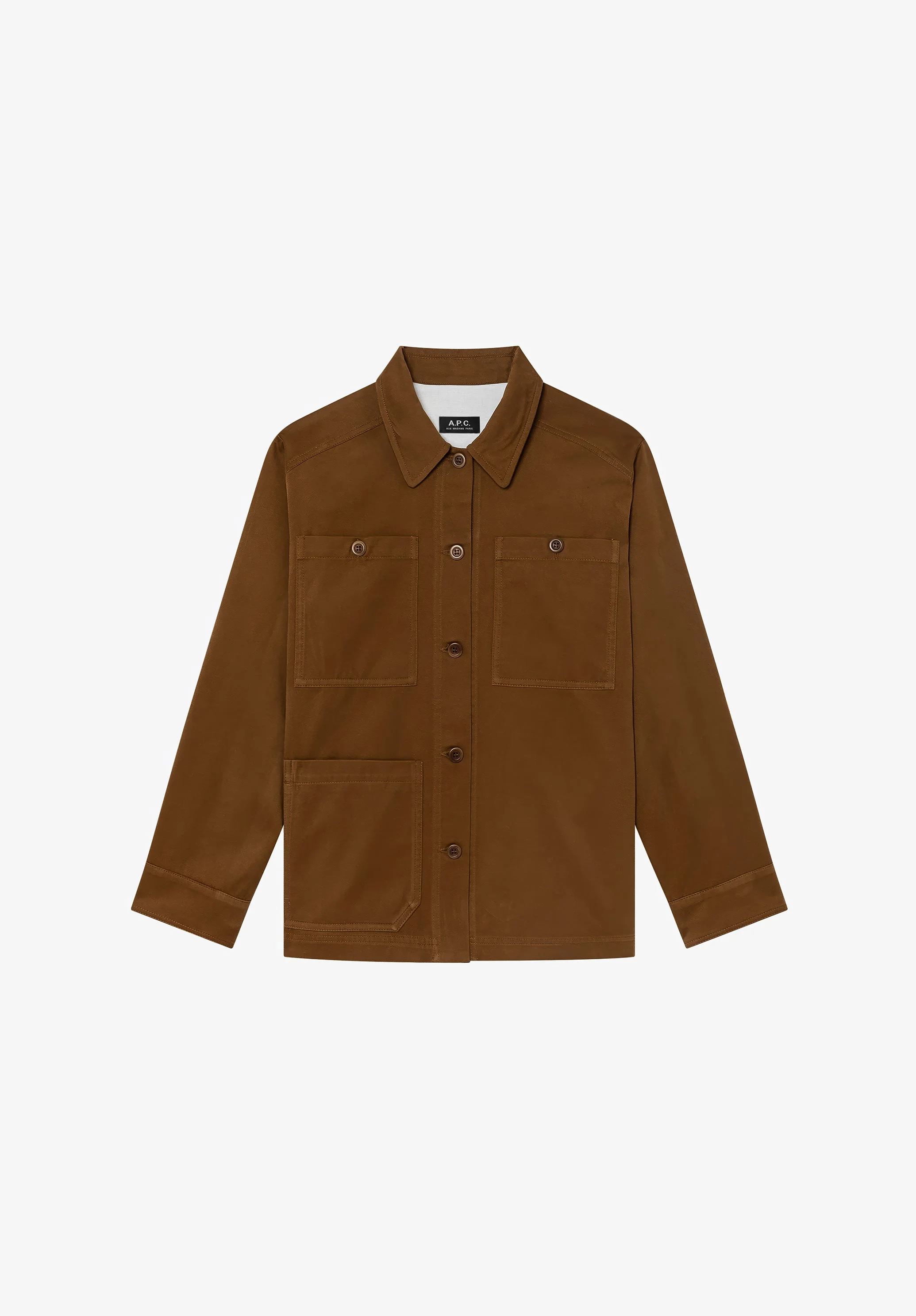 - Straight cut with a loose fit. - Classic collar. - Two large buttoned breast pockets. - One large pocket at lower right. - Tone-on-tone faux horn buttons. Size Advice - Nadine is 5'9 tall and is wearing size 36. Composition & Material - 100% cotton. - Italian material. - Made in Tunisia. - Dry clean only.
