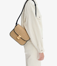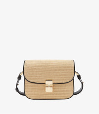 - Leather bag inspired by chic vintage bags in a small format. - Supple cowhide leather. - Adjustable leather shoulder strap. - Can be worn on the shoulder or across the chest. - Goldtone clasp. - Flap lining in cowhide suede split. - One large compartment. - Two large pockets. - Two goldtone rings on the sides. - Embossed goldtone A.P.C. Rue Madame Paris logo. Size Advice - Cotton lining. - Dimensions: 8.3 x 6.7 x 2. - Adjustable shoulder strap: 14.2 and 19.3. - Smaller version of the Grace bag and bigger version of the Grace Mini bag. Composition & Material - 100% cowhide leather. - Spanish material. - Made in Morocco. - Care instructions: wipe with a soft dry cloth. - Avoid poor weather conditions which can potentially damage the leather.