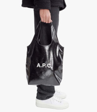 - Unisex piece. - Crinkled recycled leather-like material. - Two large handles to carry the bag by hand or on the shoulder. - One inside pocket. - White A.P.C. logo. - In the Ninon product line. Size Advice - Dimensions: 13.4 x 20.9 x 4.3. - Small version of the Ninon tote bag. Composition & Material - 55% polyurethane. 40% polyester. 5% calcium carbonate. - Made in China. - Care instructions: wipe with a soft dry cloth. Our commitments Through its RESPECT program A.P.C reduces (by implementing many practical measures to improve its environmental footprint) regulates (by respecting and enforcing its ethical responsibility on the part of its employees as well as its suppliers) and reuses (through its recycling vintage or quilts and butler programs for example).