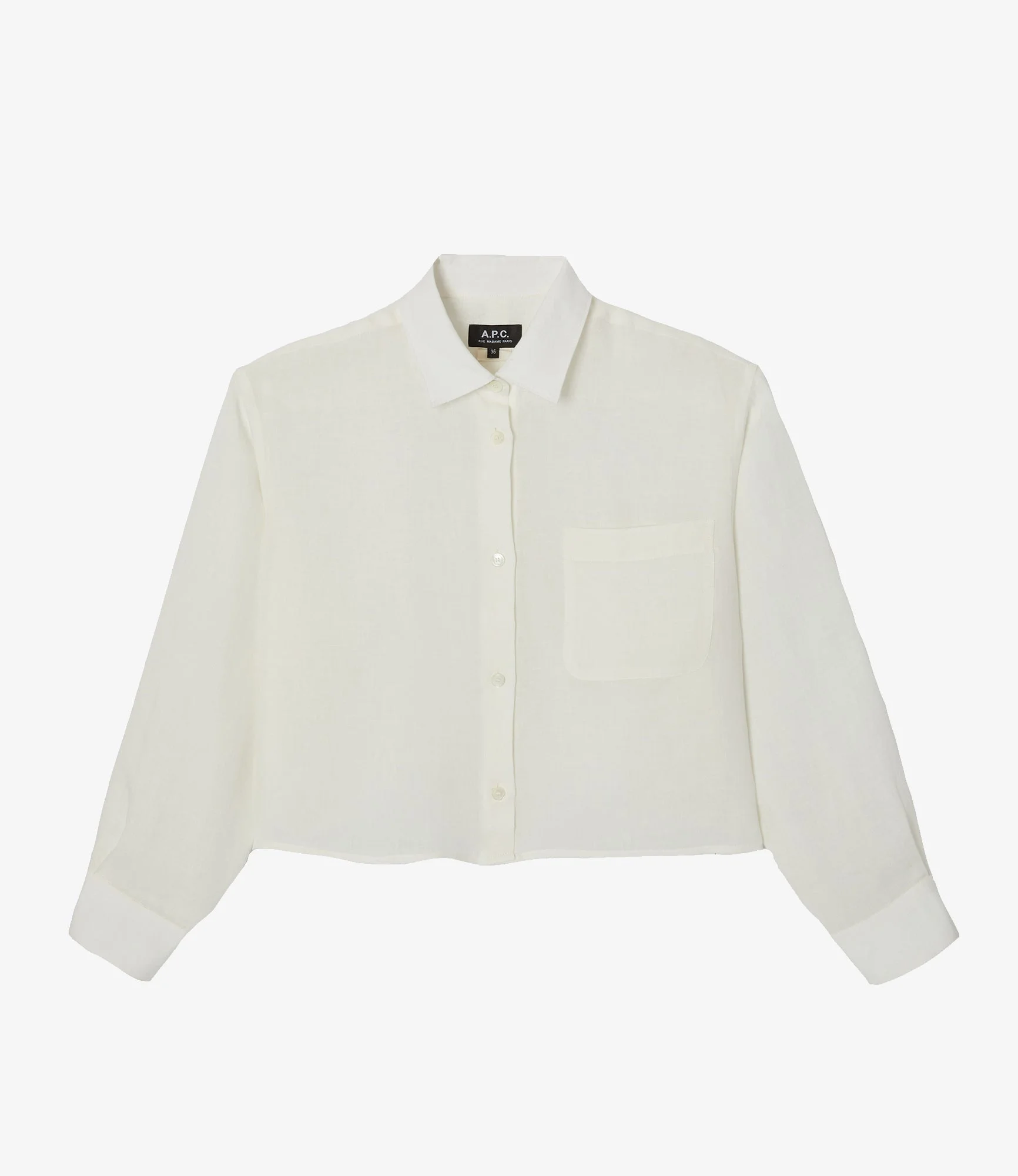 A.P.C. Women's shirt. - Short cut with a loose fit. - Classic collar. - Sloping shoulders. - One pocket over the heart. - Mother-of-pearl buttons engraved with the A.P.C. logo. Size Advice - Kelsey is 5'10 tall and is wearing size 36. Composition & Material - 100% linen. - Italian material. - Made in Morocco. - Machine wash cold (86°F) inside-out.