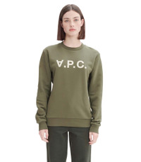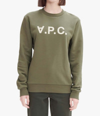 A.P.C. sweatshirt. - Unisex model. - Straight cut. - Crew neck. - Velvety flocked blue V.P.C. logo. - This garment is GOTS certified which guarantees that it contains a minimum of 95% certified organic fibers and complies with strict social and environmental criteria throughout the production chain. Size Advice - Chloe is 5'7 tall and is wearing size S. Composition & Material - 100% cotton. - Made in Turkey. - Machine wash cold (86°F) inside-out.