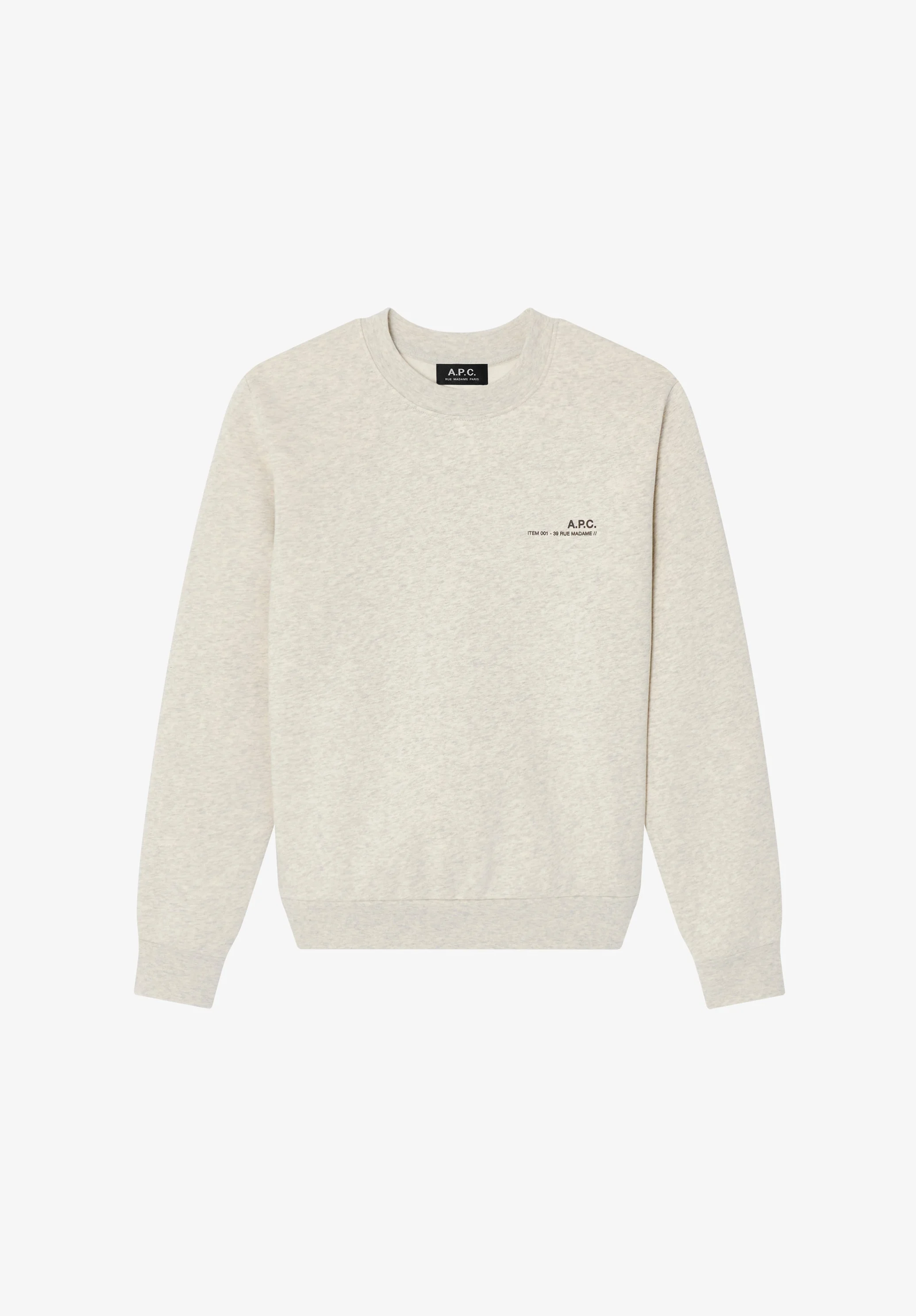 - Unisex model. - Straight cut. - Crew neck. - Small chestnut brown A.P.C. ITEM 001 logo printed over the heart. - This garment is GOTS-certified which guarantees the organic origin of this clothing and the compliance with strict social and environmental criteria throughout the production chain. - GOTS-certified product (No. 214416/EGL) - Organic textile. Size Advice - Model is 5'10 tall and is wearing size XS. - For women. we recommend that you order one size smaller than usual. Composition & Material - 100% cotton. - Portuguese material. - Made in Portugal. - Machine wash cold (86°F) inside-out.
