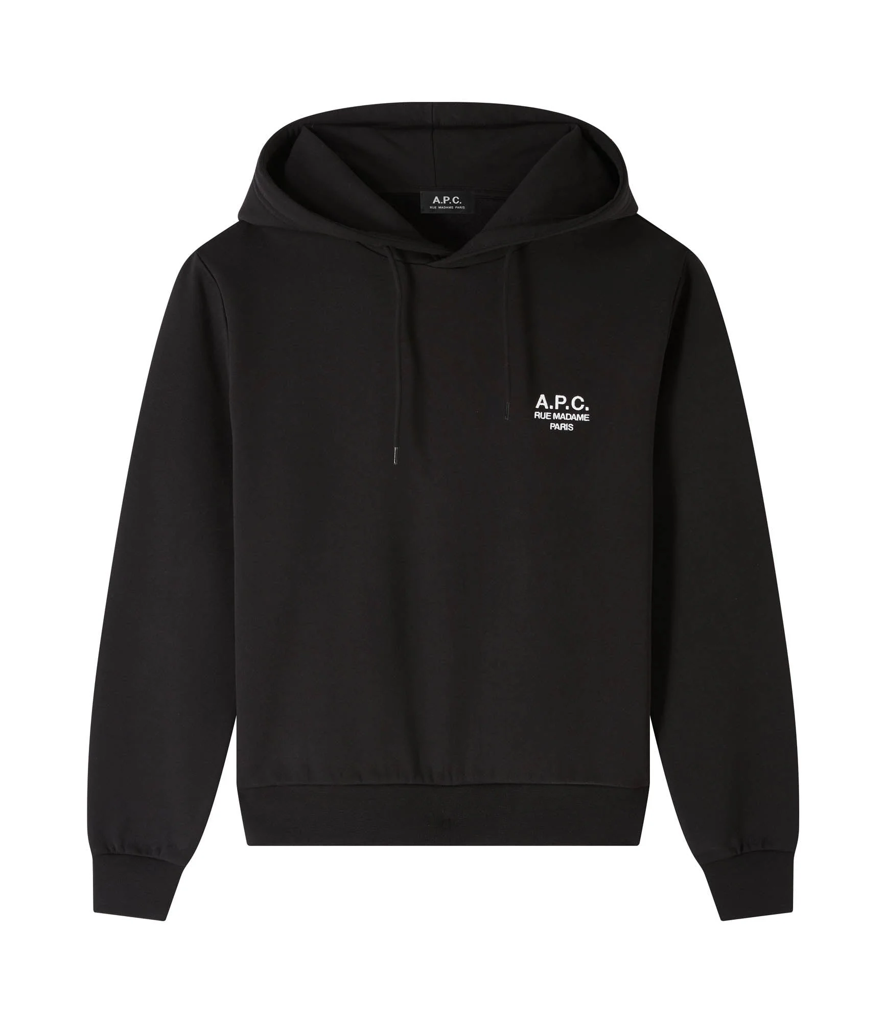A.P.C. hoodie. - Unisex model. - Straight cut. - A.P.C. Rue Madame Paris' embroidered over the heart. - Tone-on-tone drawstrings. - This garment is GOTS certified which guarantees that it contains a minimum of 95% certified organic fibers and complies with strict social and environmental criteria throughout the production chain. Size Advice - Sofi is 5'10 tall and is wearing size S. Composition & Material - 100% cotton. - Portuguese material. - Made in Portugal. - Machine wash cold (86°F) inside-out.