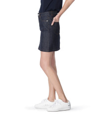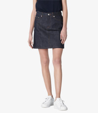 A.P.C. Women's skirt. - Straight and short slightly flared cut. - High rise. - Raw Japanese selvedge denim. - Five pockets. - Zip fly. - Caramel stitching. Size Advice - Palmyre is 5'9 tall and is wearing size 36. Composition & Material - 100% cotton. - Japanese material. - Made in Vietnam. - Machine wash 86°F inside-out. - Spin dry at minimum speed. - Do not tumble dry. - The jeans may appear to shrink after washing but will regain their shape when worn.
