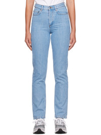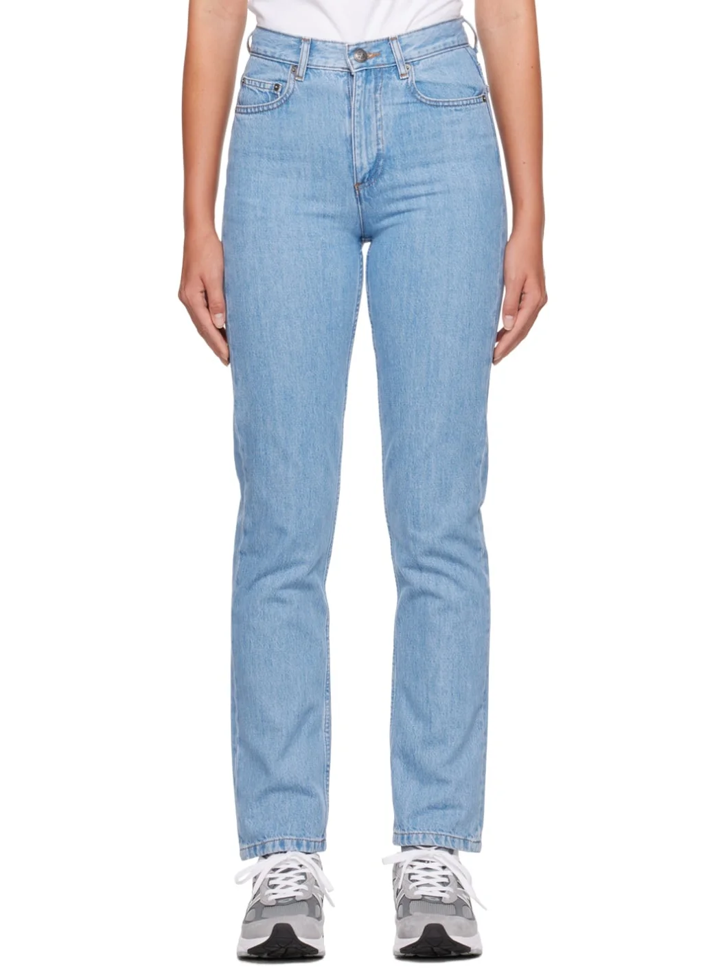Straight-leg non-stretch denim jeans. Fading throughout. · High-rise · Belt loops · Five-pocket styling · Zip-fly · Contrast stitching in tan Supplier color: Light blue 100% cotton. Made in Egypt 232252F069010