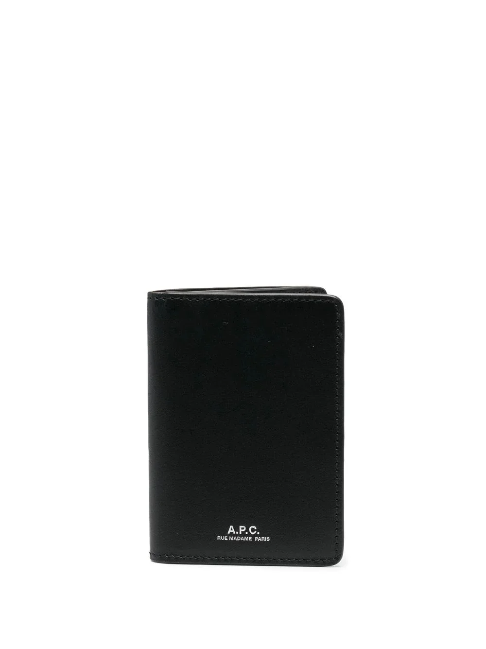 Stefan leather card colder The Stefan cardholder is crafted in smooth black leather and embossed with APC in silver lettering. APC, or the ‘Atelier of Production and Creation’, is a Parisian brand with a minimalist aesthetic and a focus on elevated everyday utility. The cardholder has a bi-fold design with multiple card slots. Highlights - Black - Calf leather - Gold-tone logo lettering - Bi-fold design - Internal card slots Imported Composition Outer: Calf Leather 100% Lining: Cotton 100% SIZE & FIT Measurement LENGTH 2.75 in(7 cm) WIDTH 4.13 in(10.5 cm)