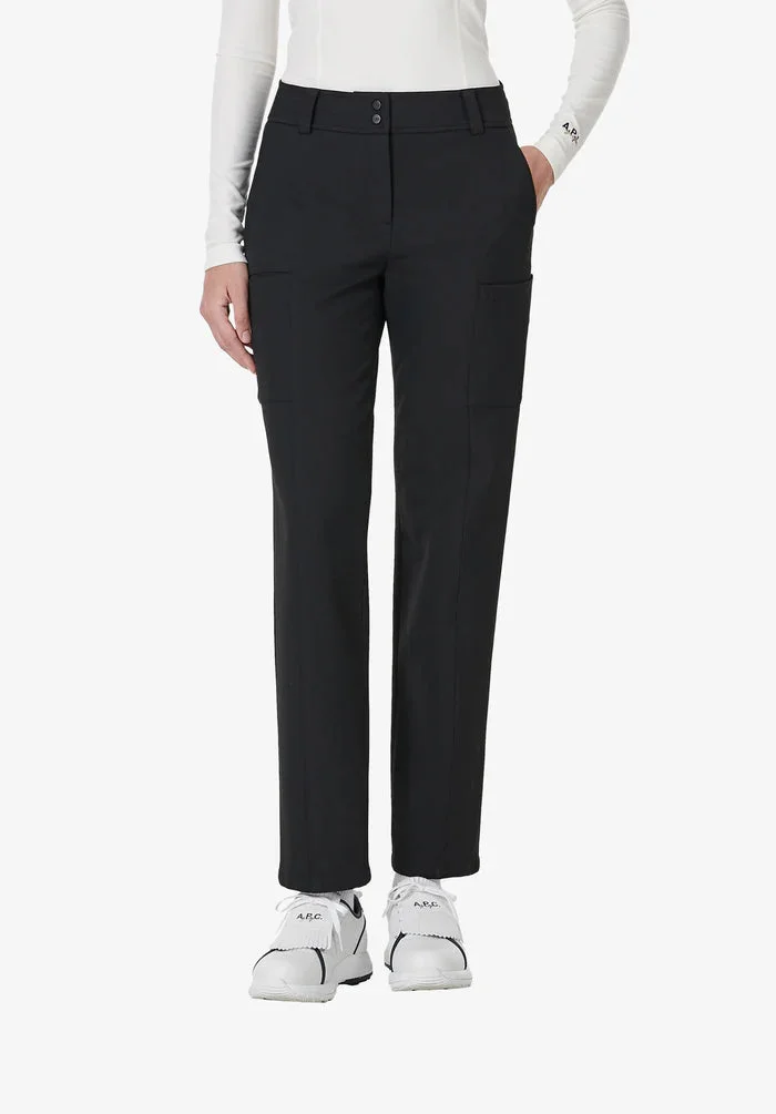 A.P.C. Golf - Fitted straight cut. - Mid-rise. - Two buttons engraved A.P.C. GOLF. - Two side pockets and two back pockets. Size Advice - This item sizes normally. We recommend that you select your usual size. Composition & Material - 63% polyester. 33% rayon. 4% polyurethane. - Made in Korea/Vietnam. - Machine wash cold (86°F) inside-out.