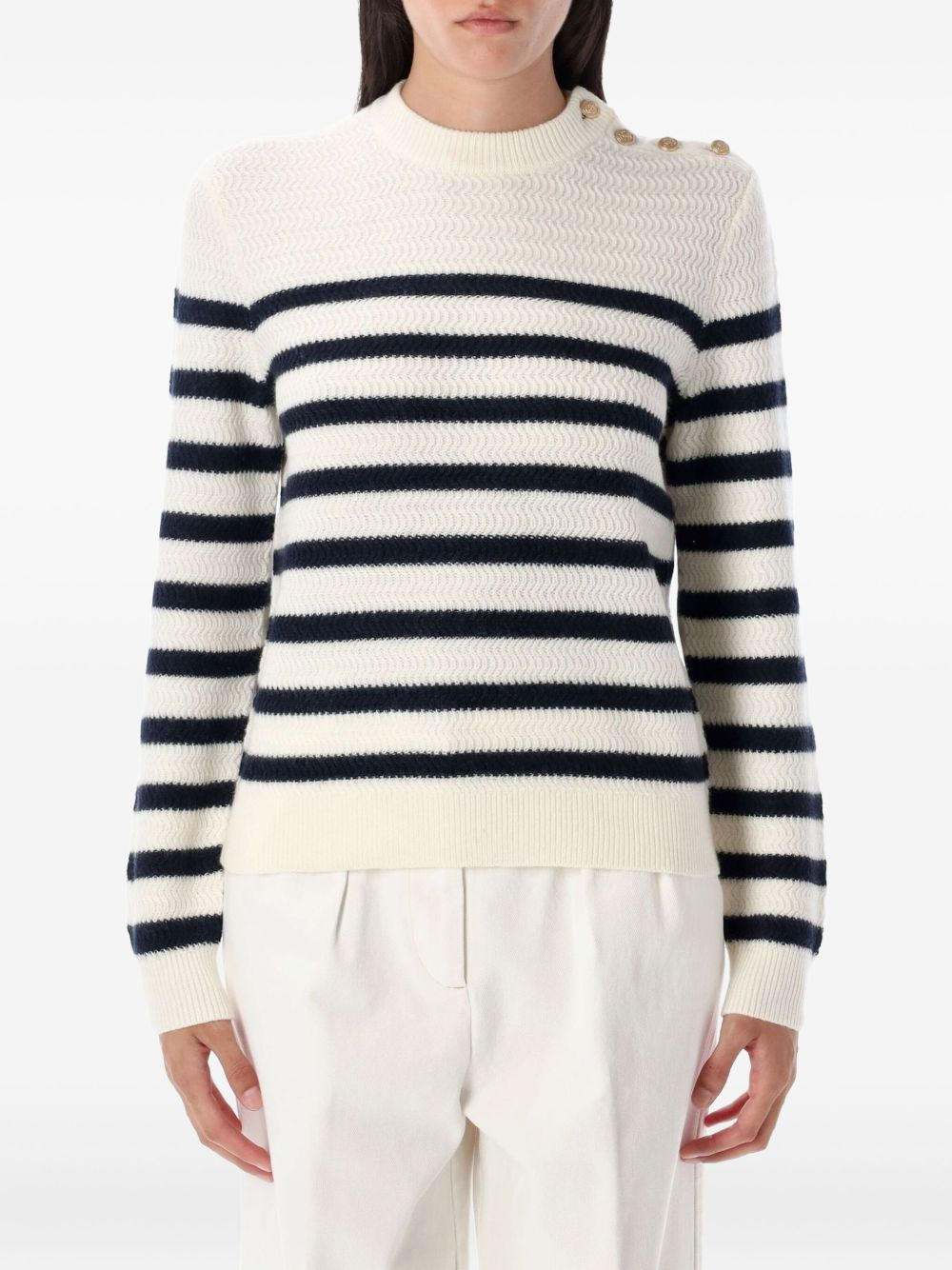 striped button-detailed sweater Highlights Imported Composition Wool 100%