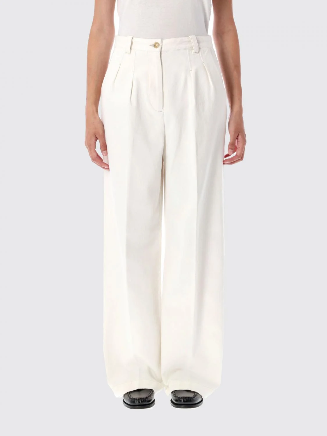 DESCRIPTION - Style: Casual - Pockets: Back slit pocket - Waist: High waist - Bottom: With straight hemline - Closure: With button and zip - Materials: Organic cotton - Pattern: Plain-colored DETAILS AND CARE Composition 100% organic cotton SIZE AND FIT Sizes not available Size and fit Regular fit Designer code: F08398COGZV AAC Giglio Code: H28600 Designer: A.P.C. Collection: A.P.C. Woman Category: Clothing A.P.C.