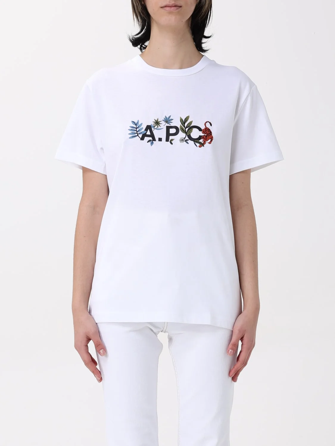 DESCRIPTION - Style: Safari - Logo: Contrasting - Details: With embroidery - Model: Crewneck - Neckline: Crewneck - Shoulders: Regular - Sleeves: Short - Bottom: With straight hemline - Materials: Cotton - Pattern: undefined DETAILS AND CARE Composition 100 AF SIZE AND FIT Sizes not available Size and fit Slim fit Designer code: COBQXM26497 AAB Giglio Code: 424032 Designer: A.P.C. Collection: A.P.C. Woman Category: Clothing A.P.C.