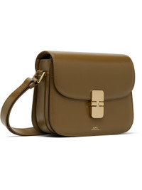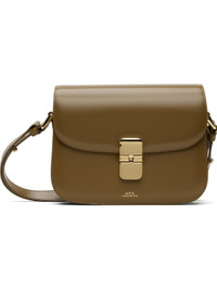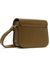 Buffed leather shoulder bag. · Adjustable crossbody strap · Gold-tone logo stamp at face · Concealed patch pocket at face · Tab-slot flap · Three-compartment interior · Cotton twill lining · Gold-tone hardware · H7" x W8.5" x D2" Supplier color: Terre Leather. Made in Morocco 252252F048018
