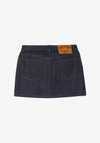 A.P.C. x Marc Jacobs interaction skirt. - Japanese raw denim. - Very short cut slightly flared. - High waist. - THE JEAN A.P.C. Marc Jacobs embroidery under left front pocket. - Special Marc Jacobs and A.P.C. brown. - Double buttoning with the heads of Jean Touitou and Marc Jacbos in the spirit of an antique coin. - Stiff fabric that softens over time. - Caramel stitching. - Made from 100% organic cotton. Size Advice - Nadine is 175 cm tall and is wearing size 36. - This item runs true to size. We recommend that you select your usual size. Composition & Material - 100% cotton. - Japanese material. - Made in Vietnam. - Do not dry clean. - Machine wash cold (30°C) inside-out. - Gentle spin cycle. - Do not tumble dry. - The jeans may appear shrunken after washing but they return to their original shape when worn.