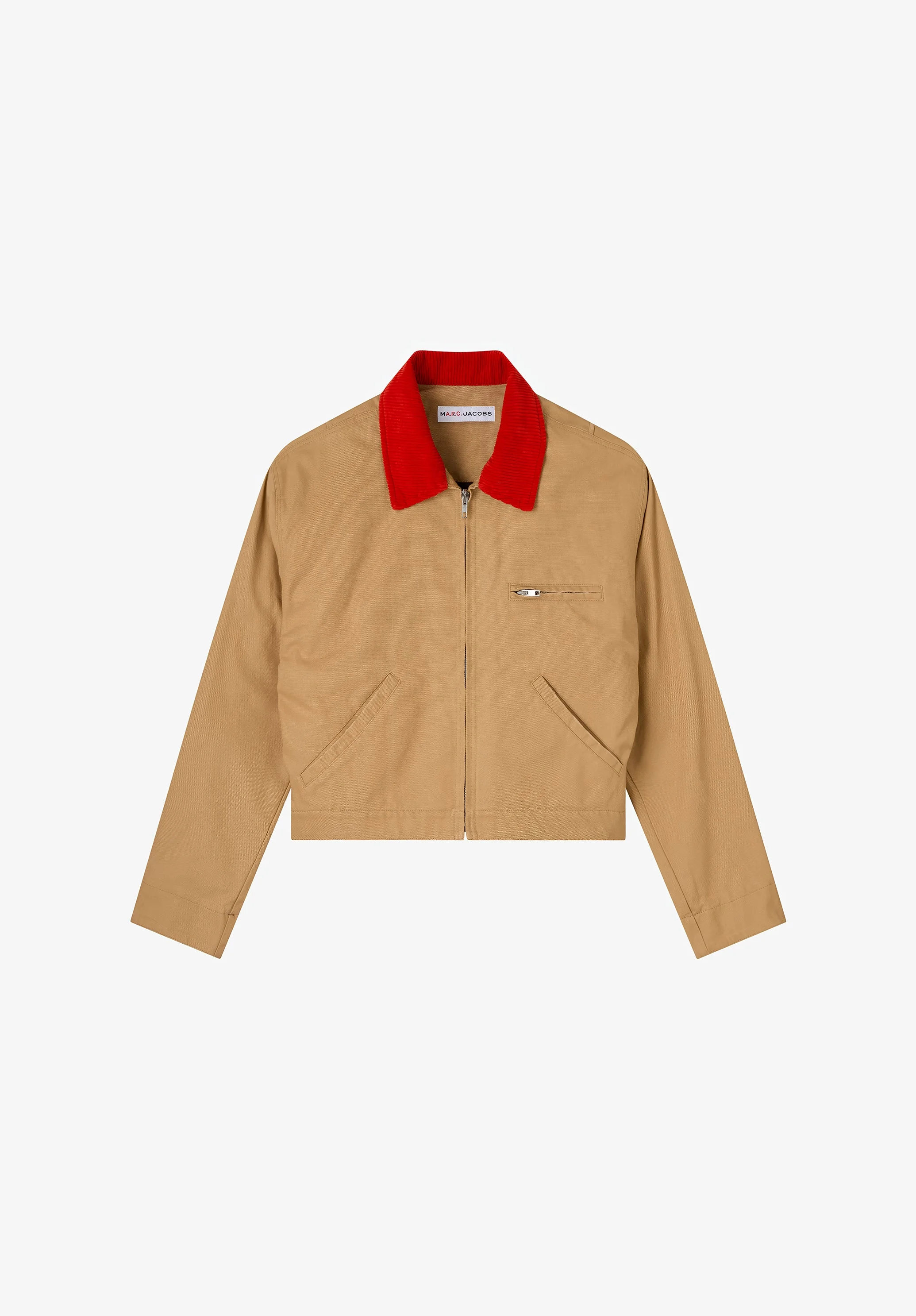 A.P.C. x Marc Jacobs interaction jacket. - Boxy full and short cut. - Classic red velvet collar. - Marc Jacobs A.P.C. embroidery on back. - Zip fastening. - One zip pocket on the heart and two pockets on the sides. - Marc Jacobs and A.P.C. leather patch on back. - Dropped shoulders. - Unlined. Size Advice null Composition & Material - 100% cotton. - Made in Tunisia. - Machine wash cold (30°C) inside-out.