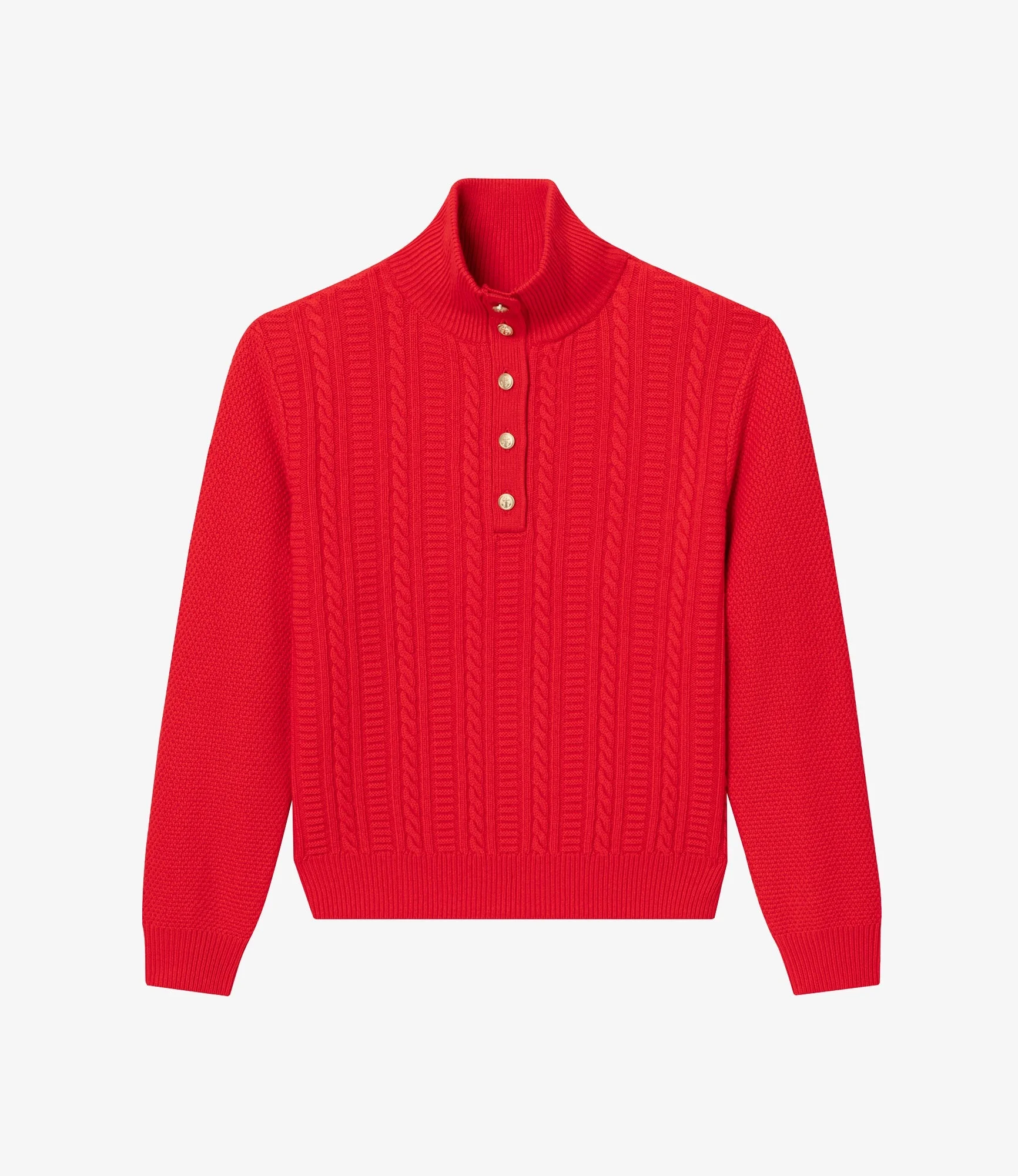 - Straight cut. - High collar with goldtone buttons decorated with a raised anchor. - Cable knit details and stripes on the body. - 100% RWS wool: Responsible Wool Standard a voluntary standard that attests to wool production that respects animal welfare. Size Advice - Matilda is 5'9 tall and is wearing size S. - This item sizes normally. We recommend that you select your usual size. Composition & Material - 100% wool. - Made in Hong Kong. - Hand wash or delicate cycle.