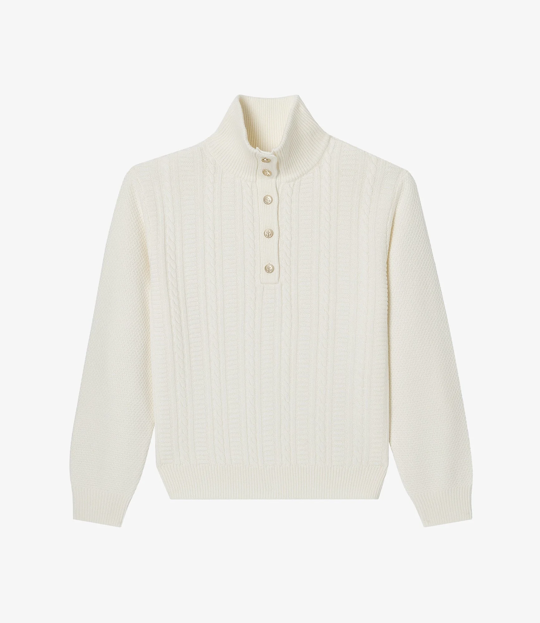- Straight cut. - High collar with goldtone buttons decorated with a raised anchor. - Cable knit details and stripes on the body. - 100% RWS wool: Responsible Wool Standard a voluntary standard that attests to wool production that respects animal welfare. Size Advice - Grace is 5'10 tall and is wearing size S. - This item sizes normally. We recommend that you select your usual size. Composition & Material - 100% wool. - Made in Hong Kong. - Hand wash or delicate cycle.