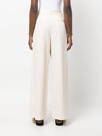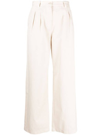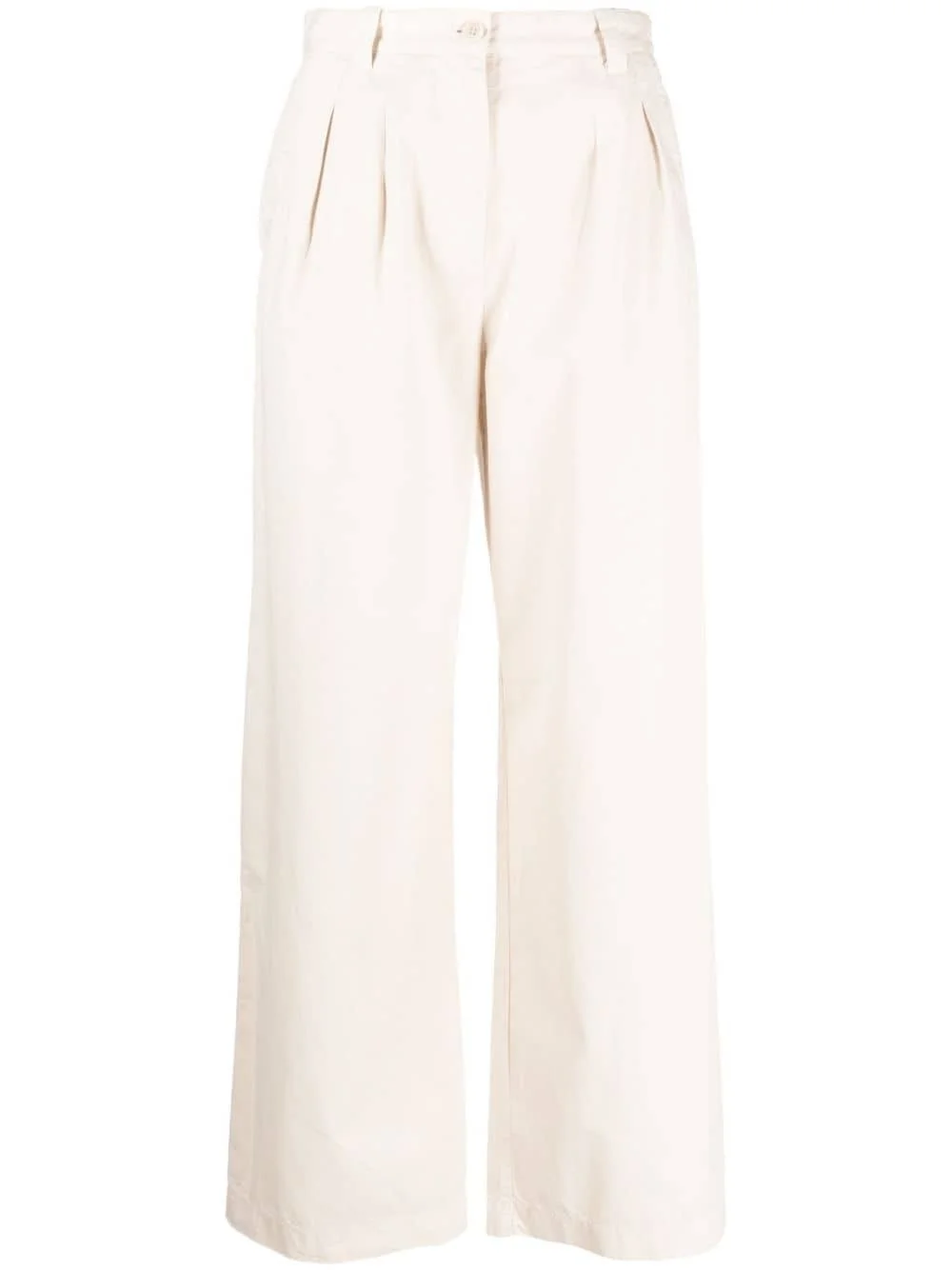 wide-leg cotton trousers Crafted from pure cotton, these straight-leg trousers by A.P.C. embody the brand's sense of simple elegance with their timeless ecru hue and relaxed wide-leg silhouette. Highlights - Ecru - Cotton - High-waisted - Belt loops - Front button fastening - Pleat detailing - Rear jetted pocket - Straight leg - Straight hem Imported Composition Cotton 100% SIZE & FIT Model measurements Height 5 ft 10 in(1.77 m) Bust/Chest 29.92 in(76 cm) Hips 34.25 in(87 cm) Waist 23.62 in(60 cm) Measurement INSIDE LEG 29.52 in(75 cm) FRONT RISE 12.2 in(31 cm) LEG OPENING 20.47 in(52 cm) WAIST 27.55 in(70 cm) HIPS 63.77 in(162 cm) FittingInformation Designed for a straight-leg fit, these trousers allow for a close fit at the waist and an unrestricted, comfortable fit over the leg Made from a midweight non-stretch fabric This piece fits true to size – take your usual size