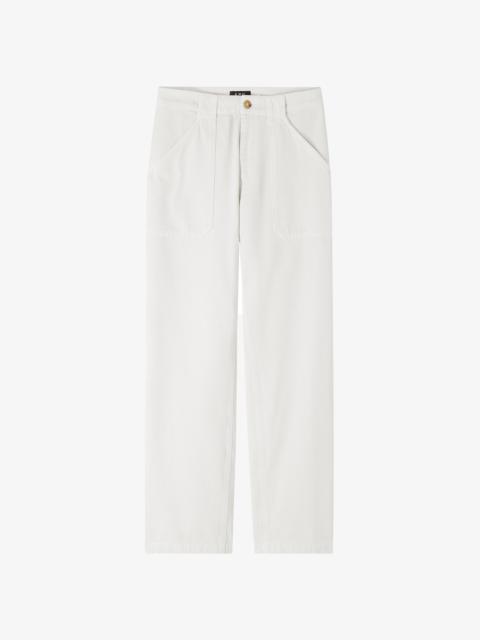 - High rise. - Wide leg with permanent creases front and back. - Pleats below the belt loops. - Zip fly. - Faux horn buttons. - Tone-on-tone topstitching. - 100% organic cotton. Size Advice - Matilda is 5'9 tall and is wearing size 36. - This item sizes normally. We recommend that you select your usual size. Composition & Material - 100% cotton. - Spanish material. - Made in Tunisia. - Machine wash cold (86°F) inside-out.