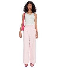PRODUCT DETAILS - High rise. - Wide leg. Permanent creases front and back. - Pleats below belt loops. - Zip fly. - Contains 25% cotton from organic farming and 25% recycled cotton. - May be worn with Tina overshirt. FABRIC & CARE - 100% Cotton. - Spanish material. - Made in Tunisia. - Machine wash cold 65-85˚ F inside-out. SIZE - Honey is 5'7 tall and is wearing size 36.