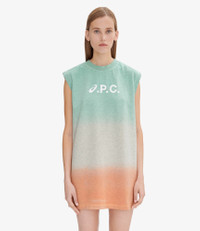 A.P.C. x Asics dress. - Straight cut. - Mid-thigh length. - Crew neck. - Very short sleeves. - 100% organic cotton. Size Advice - Kelsey is 5'10 tall and is wearing size S. Composition & Material - 100% cotton. - Portuguese material. - Made in Portugal. - Machine wash cold (86°F) inside-out.