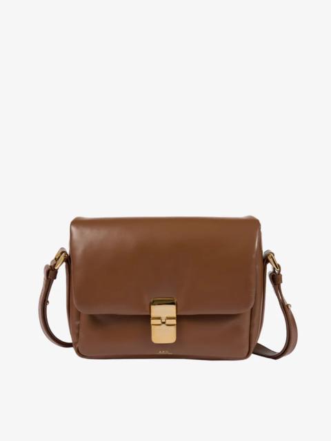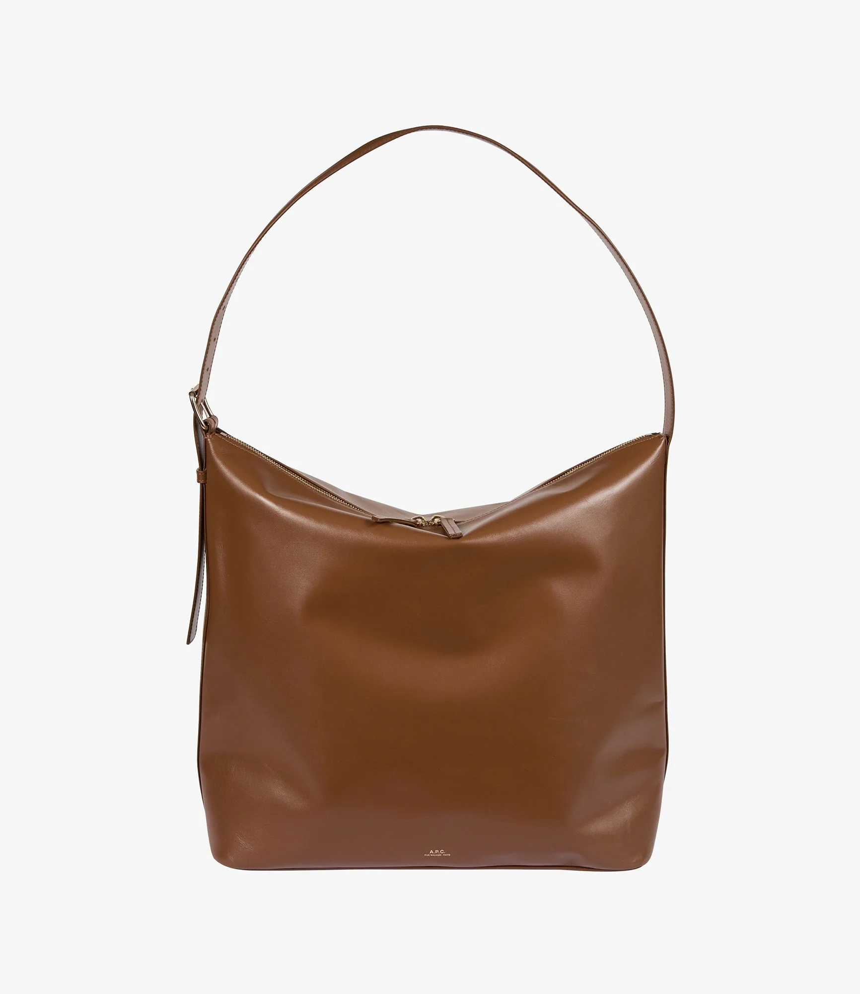 A.P.C. Women's bag. - Smooth leather handle. - One large shoulder strap adjusts with a goldtone metal buckle to carry the bag on the shoulder or by hand. - Large two-way zipper and leather zip pulls. - One inside pocket. - Cotton lining. - Embossed goldtone A.P.C. Rue Madame Paris logo. Size Advice - Cotton lining. - Dimensions: 40 x 35 x 12.5 cm. - Large version of the Vera bag. Composition & Material - 100% cowhide leather. - Spanish material. - Made in Portugal. - Care instructions: wipe with a soft dry cloth. - Avoid poor weather conditions which can potentially damage the leather.