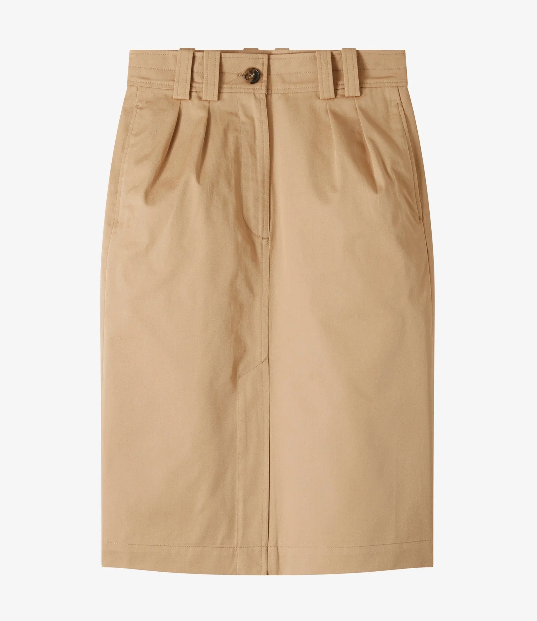 - Classic chic material. - Straight cut. - Mid-rise. - Below-knee length. - Two pleats below the double belt loops. - Side and back pockets. - Faux horn buttons. - Water-repellent finish. - Wear with the Paloma jacket. Size Advice - Ireen is 5'10 tall and is wearing size 36. Composition & Material - 100% cotton. - Italian material. - Made in Tunisia. - Dry clean.