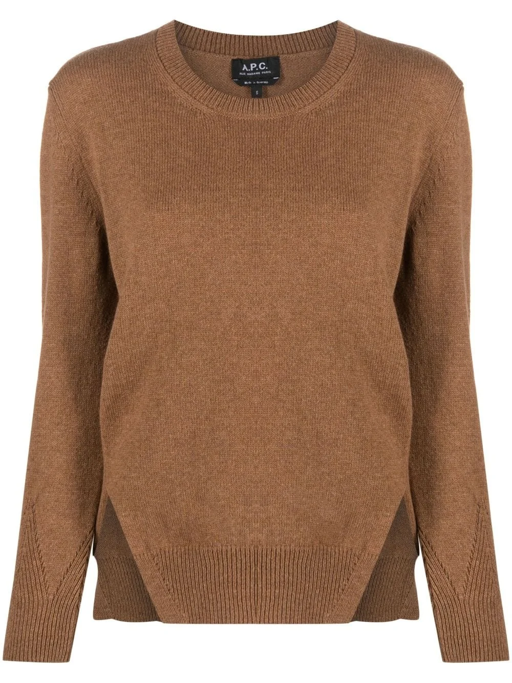 virgin wool jumper This knitted jumper speaks to A.P.C.'s minimalist style. Crafted from virgin wool, it features two side slits and is finished with ribbed trims. Highlights - Brown - Virgin wool - Crew neck - Long sleeves - Side slits - Ribbed cuffs and hem Imported Composition Virgin Wool 100% SIZE & FIT Model measurements Height 5 ft 9 in(1.76 m) Bust/Chest 33.07 in(84 cm) Hips 34.64 in(88 cm) Waist 25.59 in(65 cm) FittingInformation Designed for a relaxed fit, this piece allows for comfort and movement when worn Made with a midweight knit, this piece offers some stretch This piece fits true to size – take your usual size Washing instructions Hand Wash