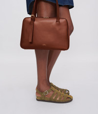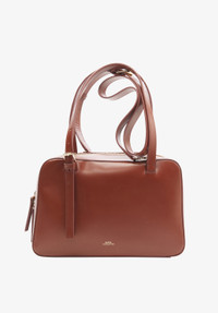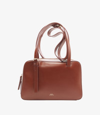 - Bag in smooth leather. - Two handles that adjust with goldtone metal buckles to carry the bag by hand or on the shoulder. - Shoulder strap adjusts with a goldtone metal buckle to carry the bag across the chest. - Closes with two leather zip pulls. - One inside pocket. - Embossed goldtone A.P.C. Rue Madame Paris logo. Size Advice - Cotton lining. - Dimensions: 28 x 18 x 10 cm. - Horizontal version of the Virginie bag. Composition & Material - 100% cowhide leather. - Spanish material. - Made in Morocco. - Care instructions: wipe with a soft dry cloth. - Avoid poor weather conditions which can potentially damage the leather.