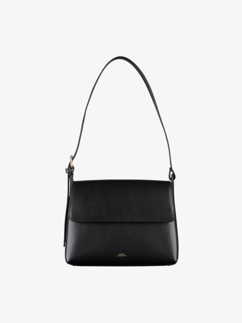 A.P.C. Women's bag. - Smooth leather bag. - Can be carried on the shoulder or by hand. - Adjustable leather strap adjusts with a goldtone metal buckle. - Magnetic closure. - One interior pocket. - Cotton lining. - Embossed goldtone 'A.P.C. Rue Madame Paris' logo. Size Advice - Dimensions: 9.8 x 7.1 x 3.1. - Flap version of the Virginie bag. Composition & Material - 100% cowhide. - Spanish material. - Made in Morocco. - Care instructions: wipe with a soft dry cloth.