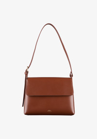 A.P.C. Women's bag. - Smooth leather bag. - Can be carried on the shoulder or by hand. - Adjustable leather strap adjusts with a goldtone metal buckle. - Magnetic closure. - One interior pocket. - Cotton lining. - Embossed goldtone 'A.P.C. Rue Madame Paris' logo. Size Advice - Dimensions: 9.8 x 7.1 x 3.1. - Flap version of the Virginie bag. Composition & Material - 100% cowhide. - Spanish material. - Made in Morocco. - Care instructions: wipe with a soft dry cloth.