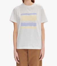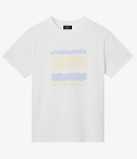 - Straight cut. - Crew neck. - Violet and yellow wave print in the center with a small A.P.C. logo. - 50% organic cotton and 50% recycled cotton. Size Advice - Kelsey is 5'10 tall and is wearing XS. - For women we recommend that you order one size smaller than usual. Composition & Material - 100% cotton. - Portuguese material. - Made in Portugal. - Machine wash cold (86°F) inside-out.