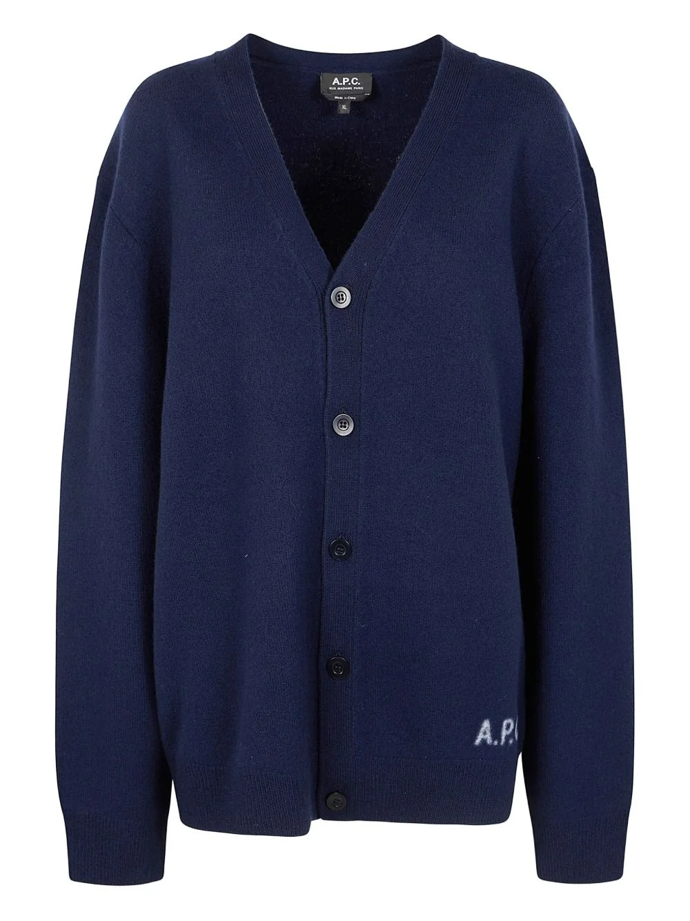 wool cardigan Highlights - Navy blue - V-neck - Front button fastening - Long sleeves - Embroidered logo at the front Imported Composition Wool 100% Washing instructions Hand Wash