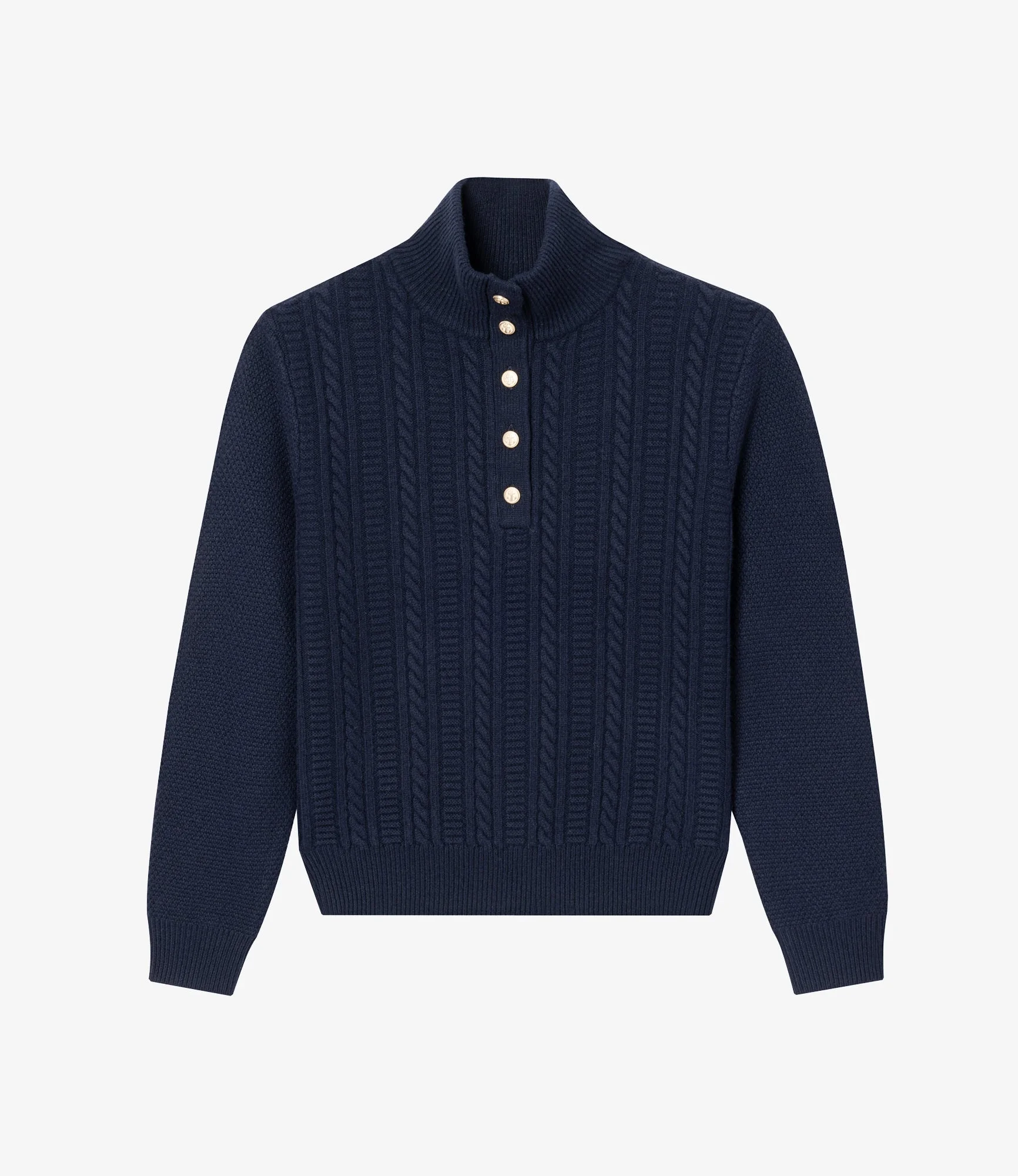 - Straight cut. - High collar with goldtone buttons decorated with a raised anchor. - Cable knit details and stripes on the body. - 100% RWS wool: Responsible Wool Standard a voluntary standard that attests to wool production that respects animal welfare. Size Advice - Grace is 5'10 tall and is wearing size S. - This item sizes normally. We recommend that you select your usual size. Composition & Material - 100% wool. - Made in Hong Kong. - Hand wash or delicate cycle.