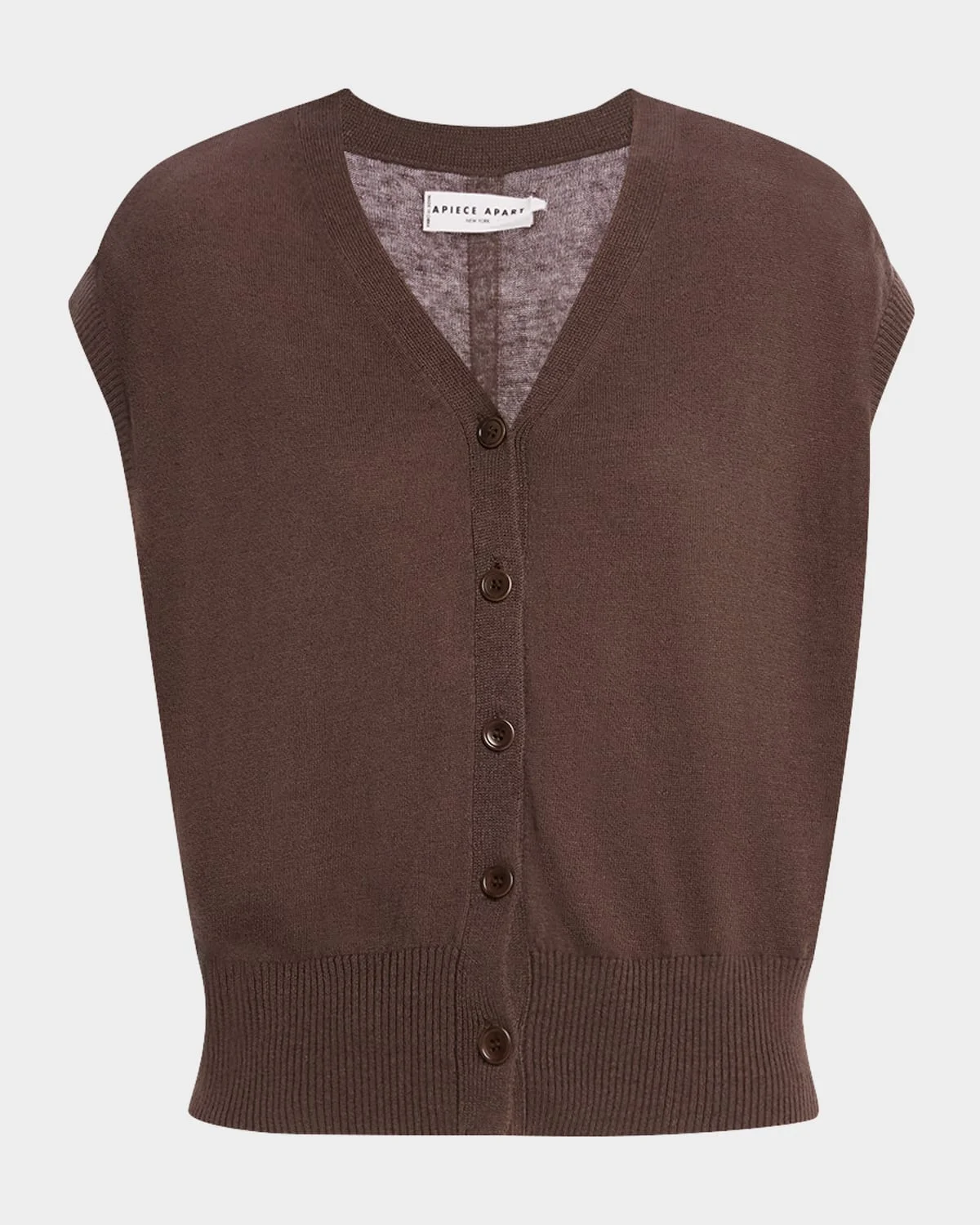 Apiece Apart fine weight knit vest made in a blend of organic linen and organic cotton V neckline; button front Cap sleeves Relaxed fit Organic linen/organic cotton Dry clean Imported